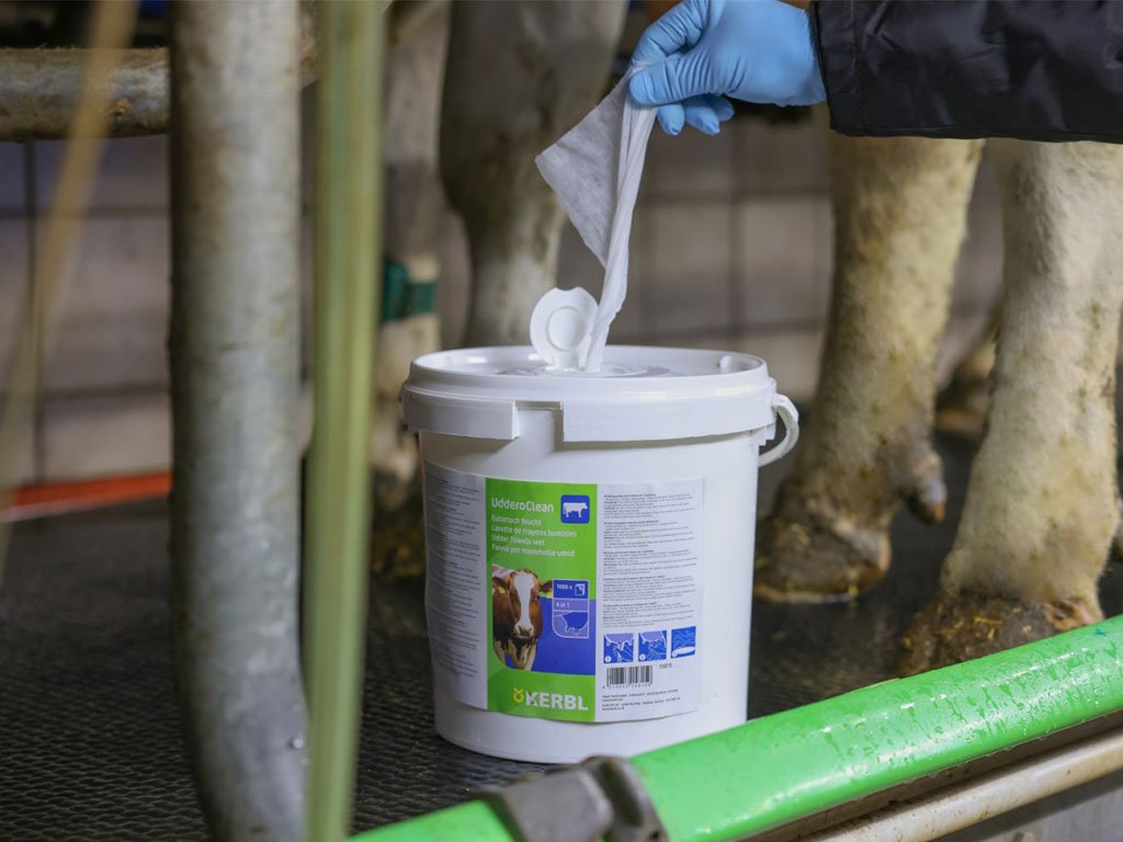 Vlhčené utěrky na vemena KERBL 15815 UDDEROCLEAN 20x20 cm, 1000 útržků, kbelík s víkem