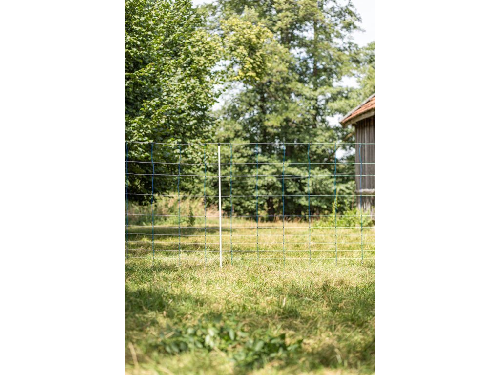Vodivá ohradníková síť nabízí velmi pokročilé řešení pro flexibilní a spolehlivou ochranu výběhů. Díky své nadstandardní výšce 145 cm, pevné konstrukci a kvalitním materiálům je vhodná pro různorodý chov – od menších koní přes osly až po alpaky. Extra robustní sloupky s dvojitými pozinkovanými hroty zajišťují stabilitu i v členitém terénu, zatímco vodivý systém s velmi nízkým odporem s kombinací měděných a nerezových vodičů umožňuje efektivní a rovnoměrné rozvedení elektrických impulsů po celé délce sítě. Tyto mimořádně vysoké sítě se výborně hodí také pro zřizování mobilních nočních kotců, a to jak pro kontrolované přenocování zvířat, tak jako prevence proti predátorům. Síť se snadno instaluje a její přemístění zvládnete během několika minut, což oceníte zejména při rotaci pastvin. Viditelná bílomodrá barva, pevné svařené spoje a kvalitní vodivé materiály napomáhají dlouhodobému a bezpečnému provozu. Bez složité montáže a s vysokou variabilitou využití představuje tato síť praktickou volbu pro každého, kdo hledá odolné a funkční řešení ochrany zvířat v terénu. Síť lze snadno připojit k elektrickému zdroji a vytvořit tak plnohodnotný elektrický ohradník.