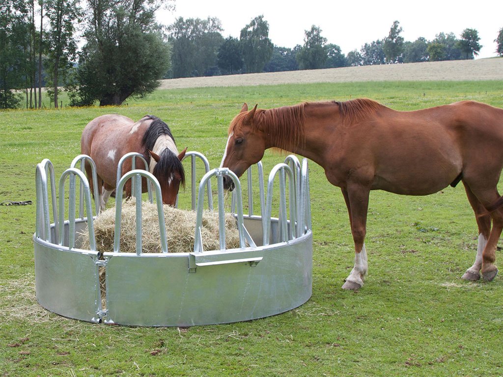Příkrmiště je přizpůsobeno pro krmení skotu i koní a disponuje 12 samostatnými krmnými místy, která usnadňují přístup zvířat a omezují vznik konfliktů. Díky tříbodovému závěsu jej lze snadno přepravovat a uchytit za traktor, což výrazně zjednodušuje manipulaci na pastvině. Vnitřní průměr 219 cm je dostatečně prostorný i pro větší balíky, čímž se snižuje frekvence doplňování krmiva. Odolná konstrukce zvládne náročné podmínky provozu i časté přemisťování. Příkrmiště je spolehlivou a trvanlivou volbou pro každého chovatele hledajícího efektivní způsob skupinového krmení.