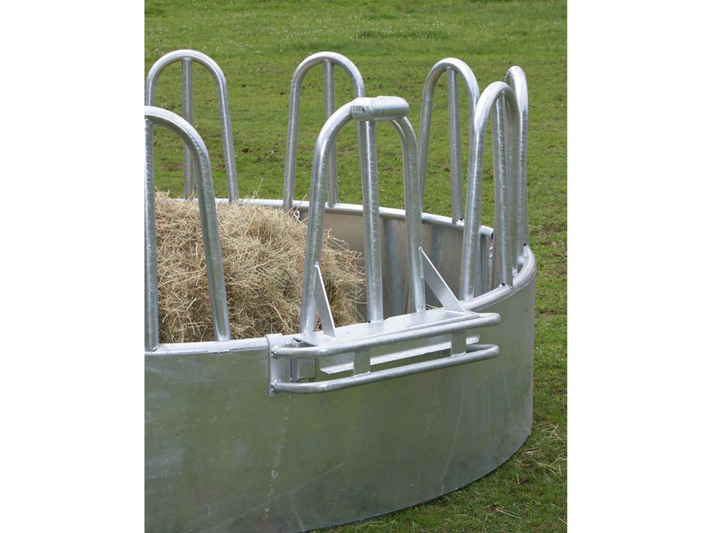 Kruhové příkrmiště, pro skot a koně, 3dílný s 12 otvory pro krmení, tříbodový závěs, žárově pozinkovaný, výška 116 cm, vnitřní průměr 219 cm, vnější průměr 236 cm.