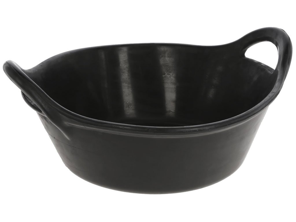 Pryžový krmný a napájecí žlab, pro skot, ovce, kozy, prasata, koně, univerzální gumový žlab, flexibilní a extrémně odolný, objem 11 litrů, průměr 40 cm, výška 14 cm.