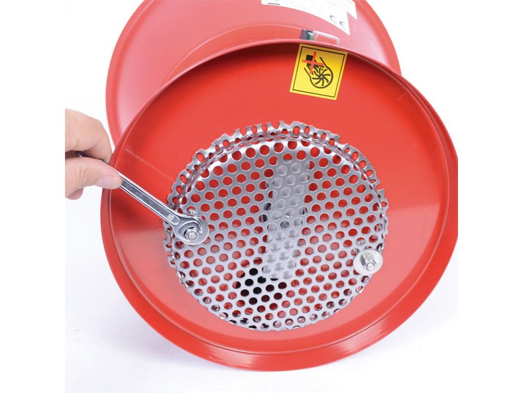 Výkon šrotovníku se odvíjí od zvolené hrubosti daného síta a pohybuje se v rozmezí 25 - 50 - 110 – 200kg/hod - čím větší hrubost, tím vyšší rychlost šrotování. Kladívkový šrotovník je dodáván s namontovaným sítem o průměru 7mm a jako dárek obdržíte navíc další tři síta o velikosti 1,5 – 2,5 – 5mm + klíč k výměně sít. Celkem budete tedy mít k dispozici 4 síta.