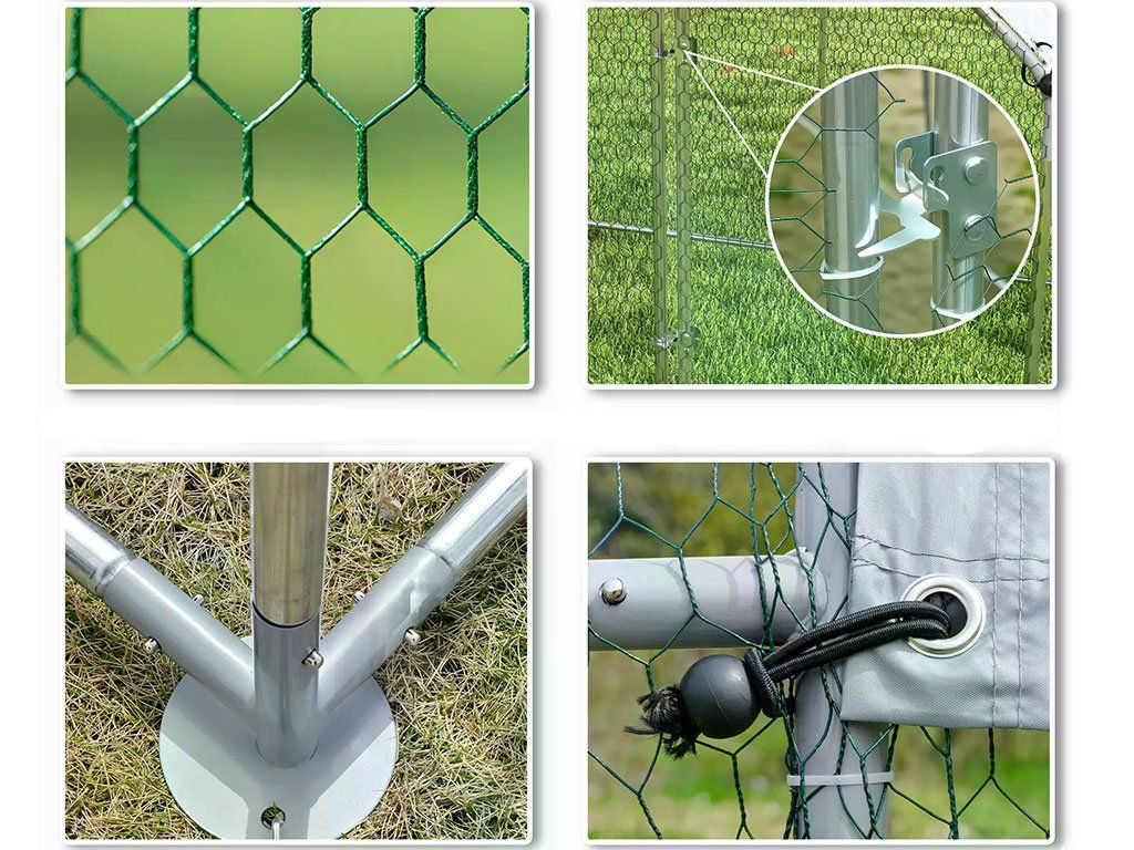 Tento prostorný výběh je skvělým řešením pro každého chovatele, který chce svým zvířatům dopřát bezpečný pobyt na čerstvém vzduchu. Díky odolnému pletivu a pevné ocelové konstrukci jsou zvířata chráněna před predátory i nepřízní počasí. Výběh snadno sestavíte díky promyšlenému systému a součástí je i stříška z voděodolné Oxfordské tkaniny, která chrání drůbež před sluncem i deštěm. Praktická velká branka s dvojitými bezpečnostními zámky zajišťuje pohodlný přístup i snadnou a bezpečnou péči o zvířata.