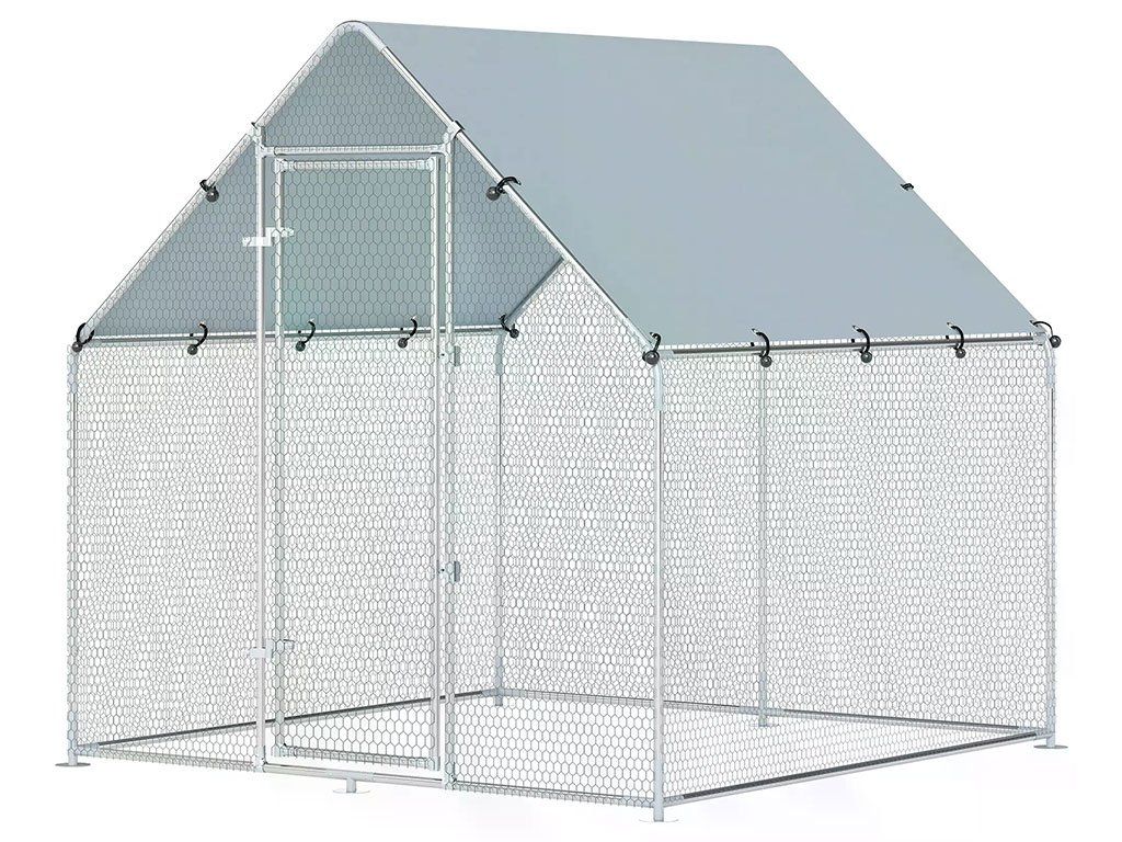 Výběh pro drůbež pozinkovaný, vhodný pro 4-6 slepic, prostorný o rozloze 4 m2, odolné šestihranné pletivo, ochranná plachta proti UV záření a dešti, velká vstupní branka, dvojité bezpečnostní zámky, celkové rozměry 200x200x200 cm.