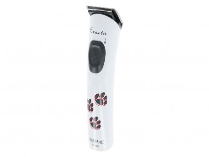 Akumulátorový strojek na stříhání psů, bílé barvy, s 5ti nástavci, s hlavou z uhlíkové oceli, s rozměry 17x4,6x4,6 cm. Pokud chcete mít svého psa hezky...