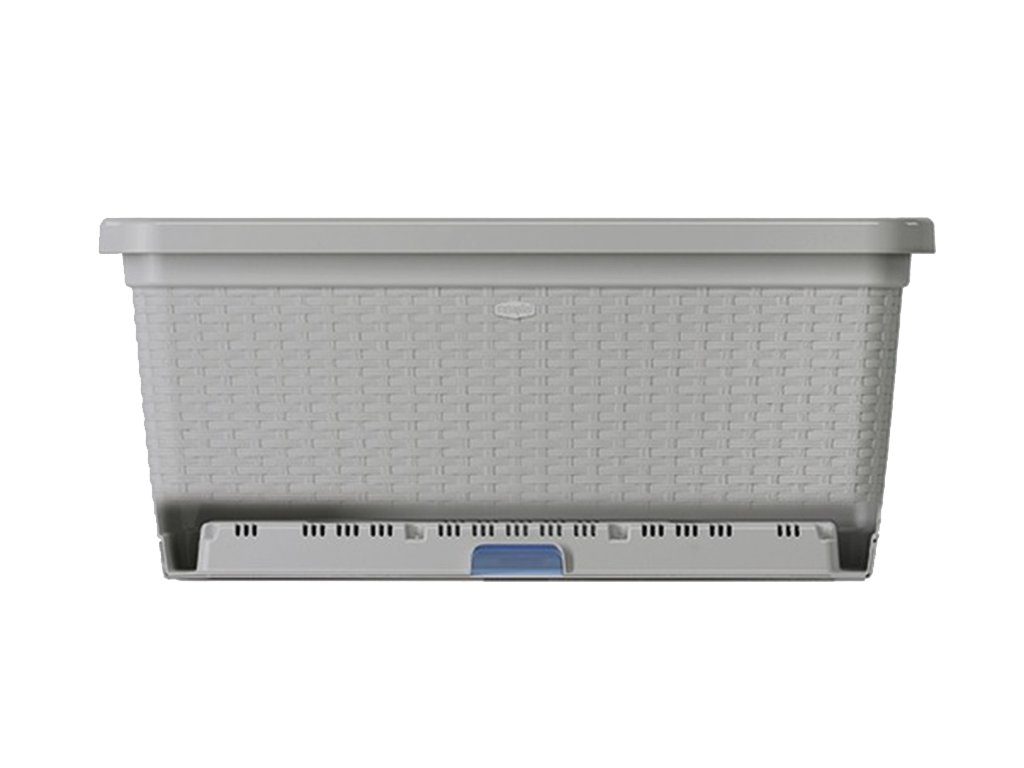 Samozavlažovací truhlík, odnímatelná vnitřní podpěra, z polypropylenu, kolečka pro lehčí manipulaci, barva šedá, o objemu 66l, rozměry 80x40x34cm.